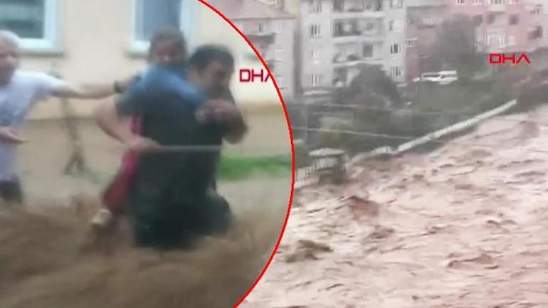 Bugün sabah saatlerinde yeniden etkili olan yağışlar nedeniyle şehir felaketi yaşarken, artvin'den de benzer görüntüler geldi.